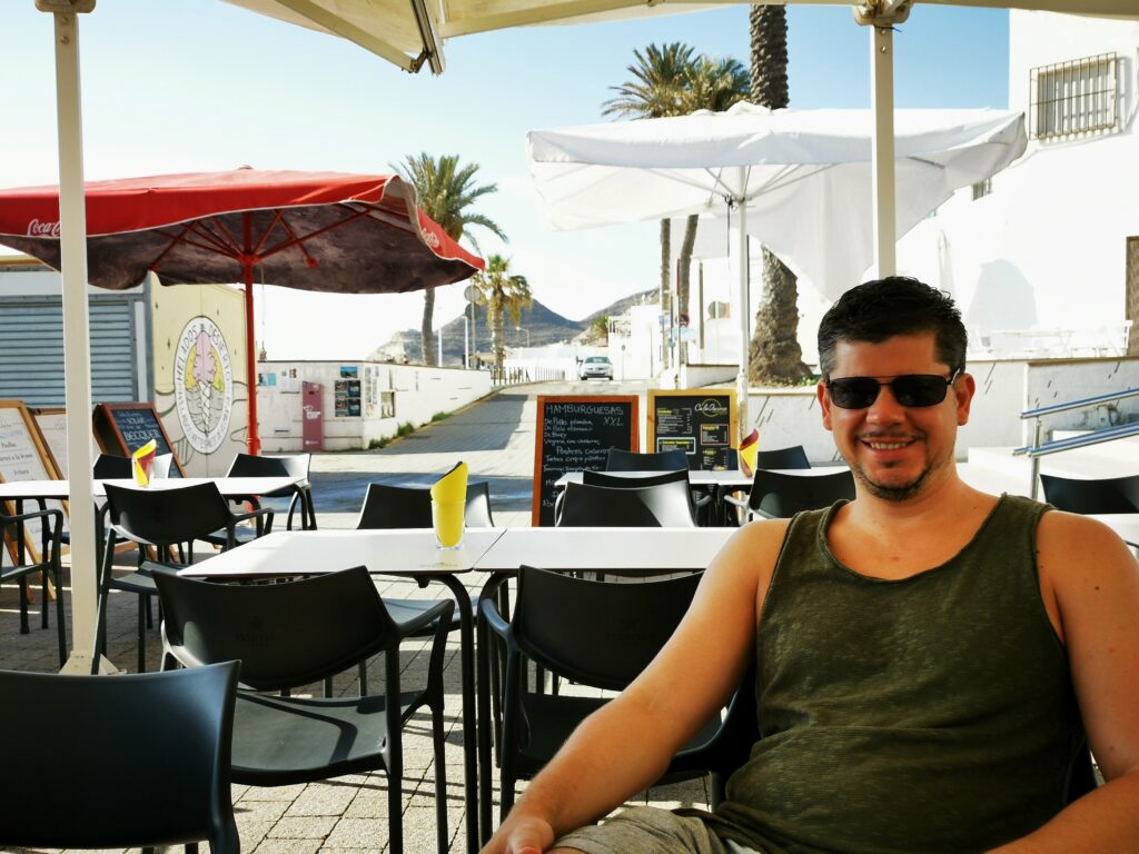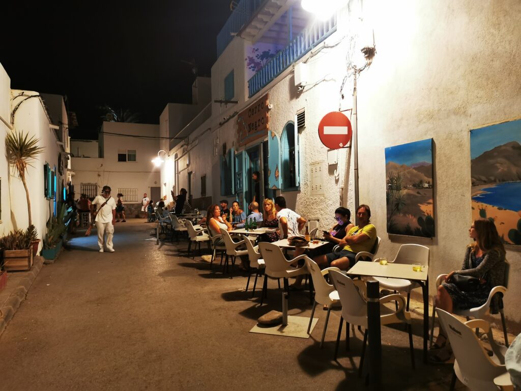 Schließlich beziehen wir unser Apartement in Las Negras. Hier kamen vor 15 Jahren bloß die Hippies und Punkies durch, die zur Cala de San Pedro wollten, einem Aussteiger- und Hippiestrand in der Nebenbucht von Las Negras hinter dem Cierre Negro, dem schwarzen Hügel (eigentlich eine Klippe am Meer).