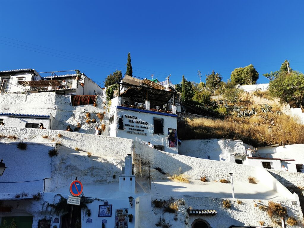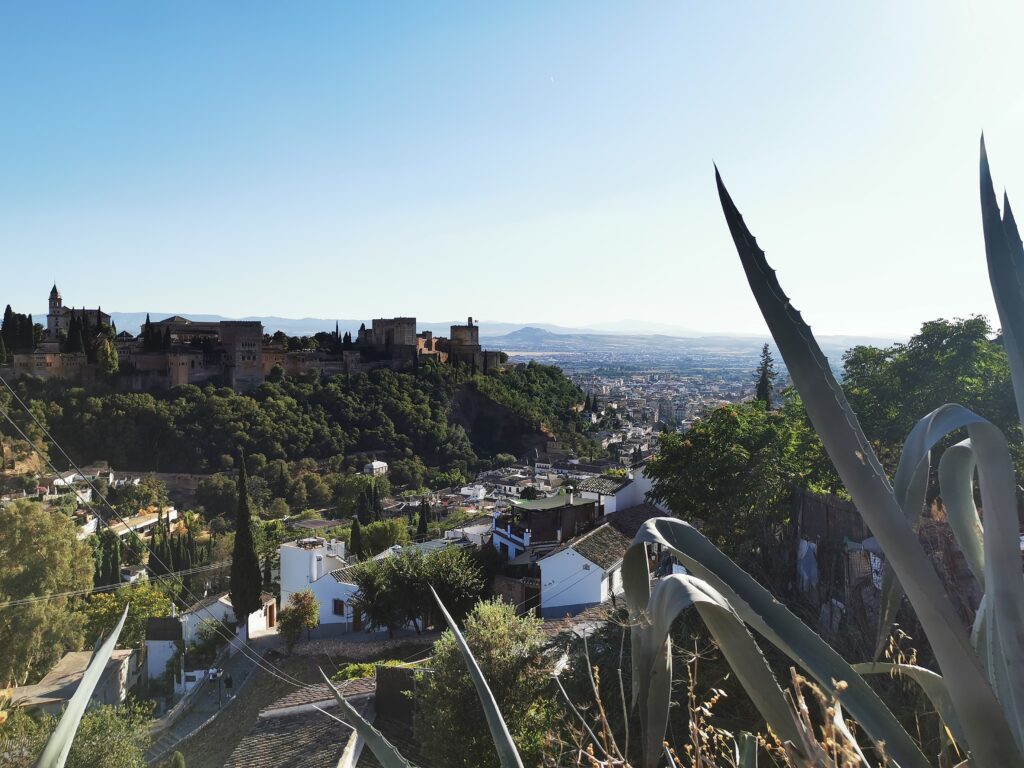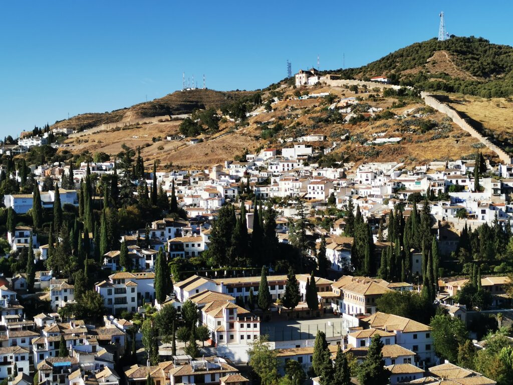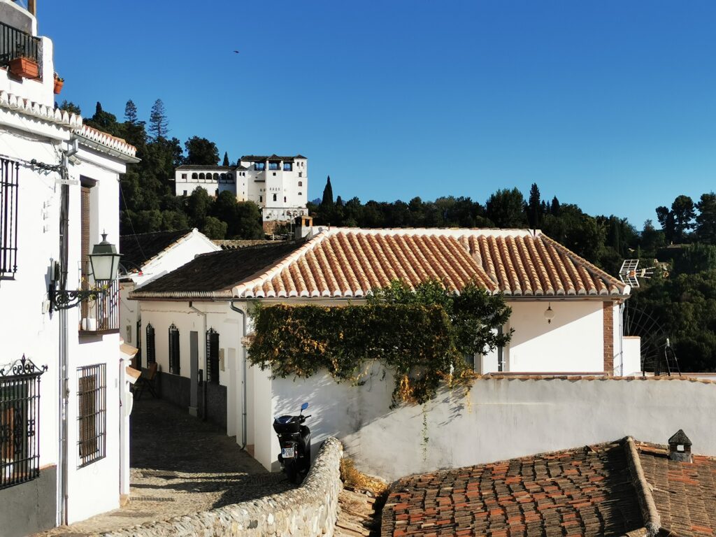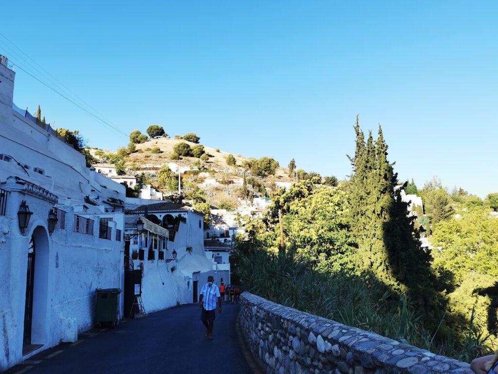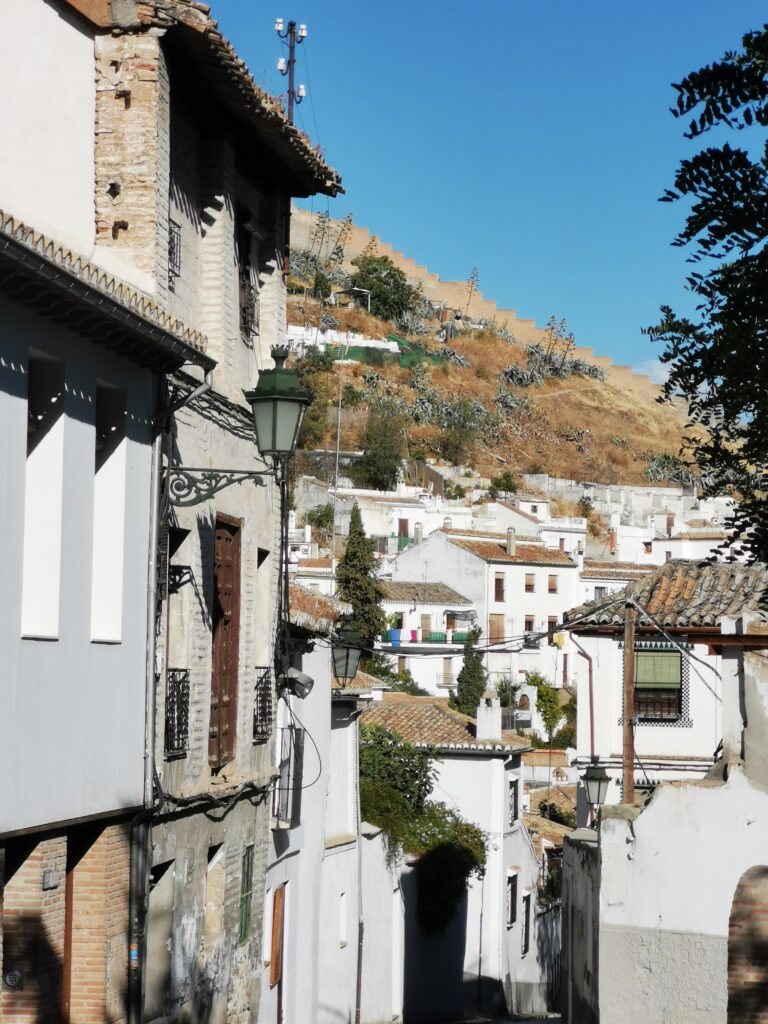 Gegenüber von der Alhambra liegt das ehemalige arabische Viertel Albaicín, das dann in den Sacremonte übergeht. Am Sacremonte leben heute noch Menschen in den Höhlen, die schon vor Jahrhunderten von Sinti und Roma besiedelt worden waren.