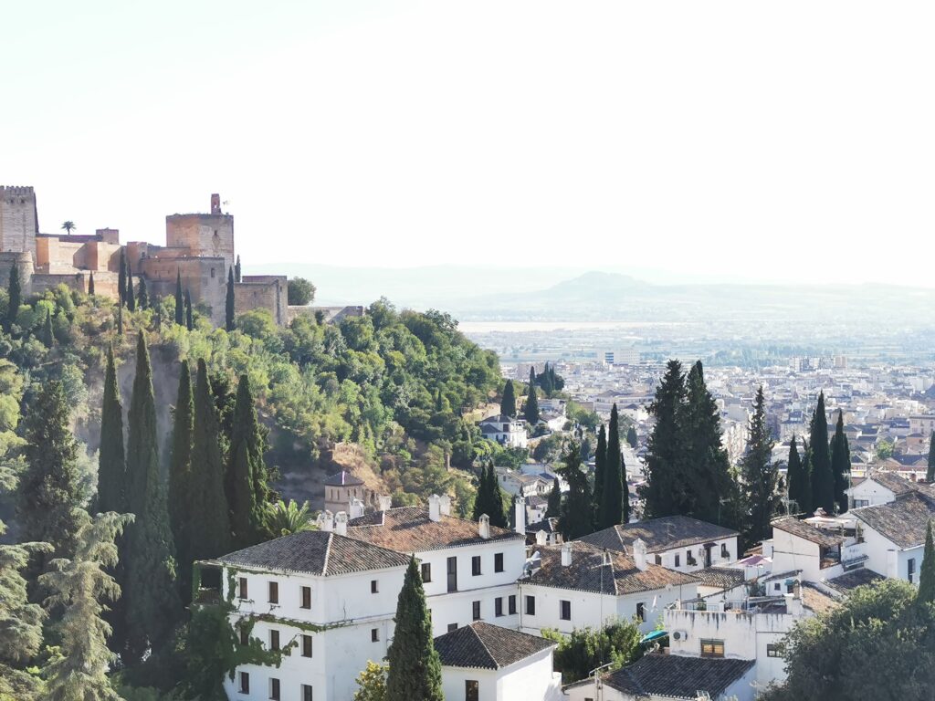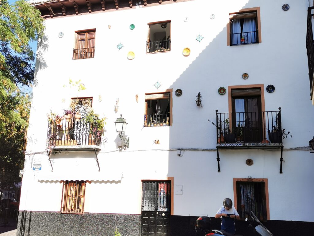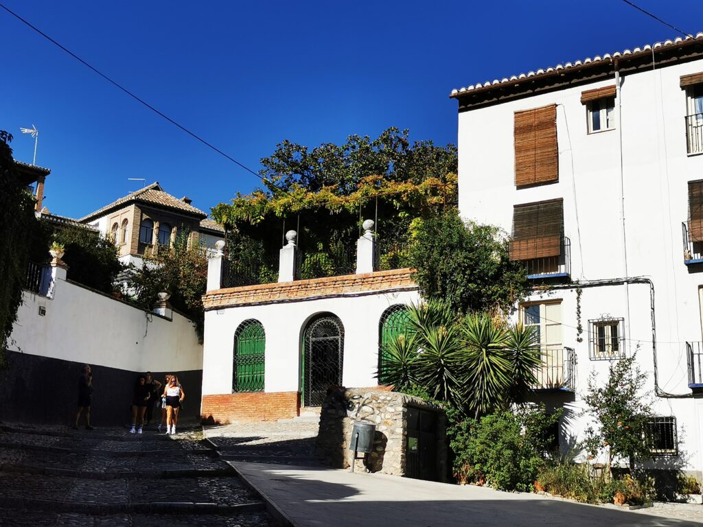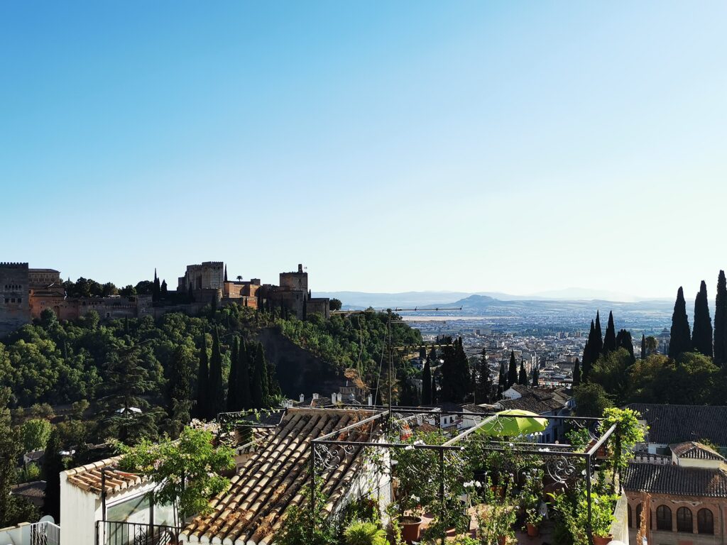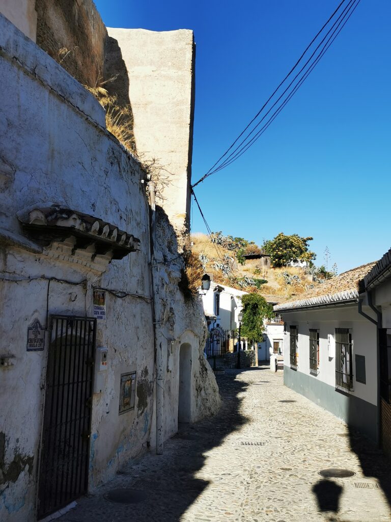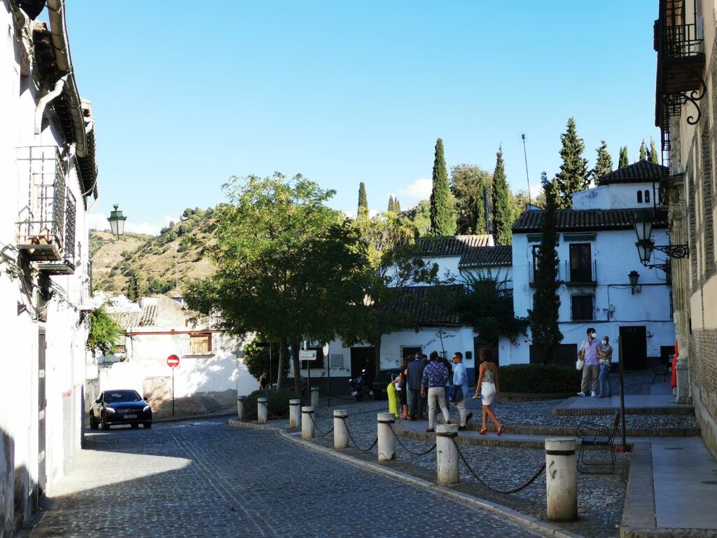 Gegenüber von der Alhambra liegt das ehemalige arabische Viertel Albaicín, das dann in den Sacremonte übergeht. Am Sacremonte leben heute noch Menschen in den Höhlen, die schon vor Jahrhunderten von Sinti und Roma besiedelt worden waren.