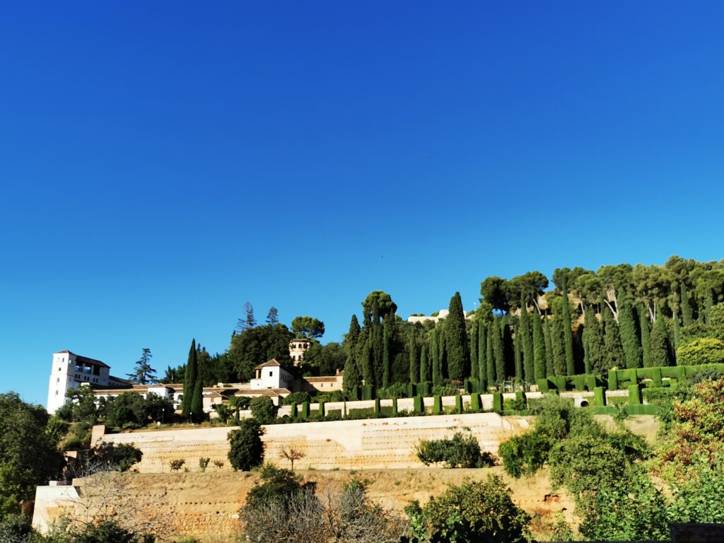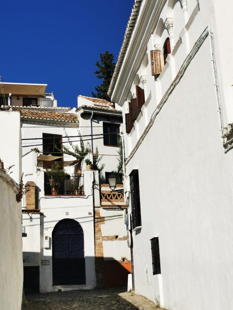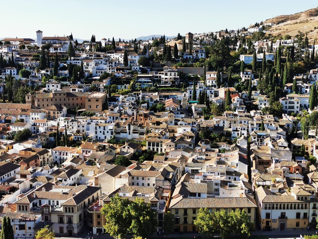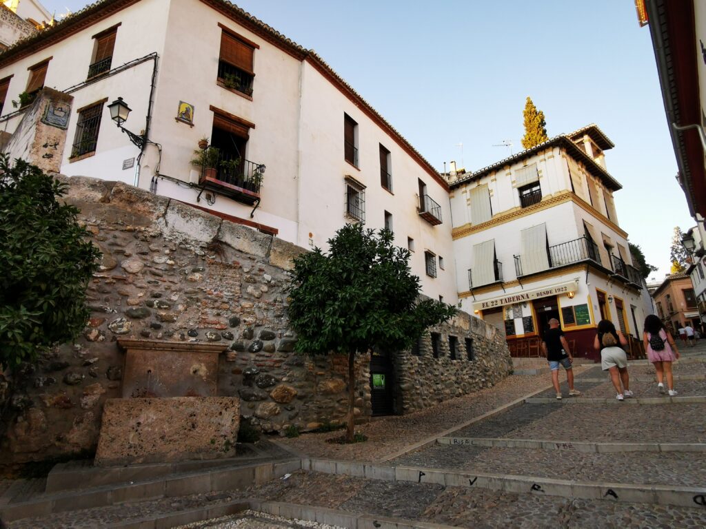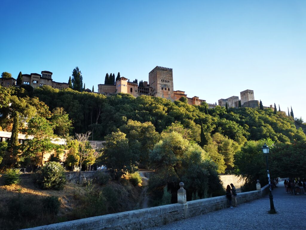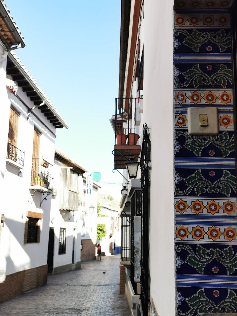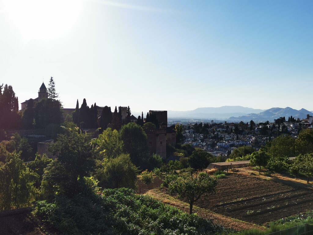 Gegenüber von der Alhambra liegt das ehemalige arabische Viertel Albaicín, das dann in den Sacremonte übergeht. Am Sacremonte leben heute noch Menschen in den Höhlen, die schon vor Jahrhunderten von Sinti und Roma besiedelt worden waren.