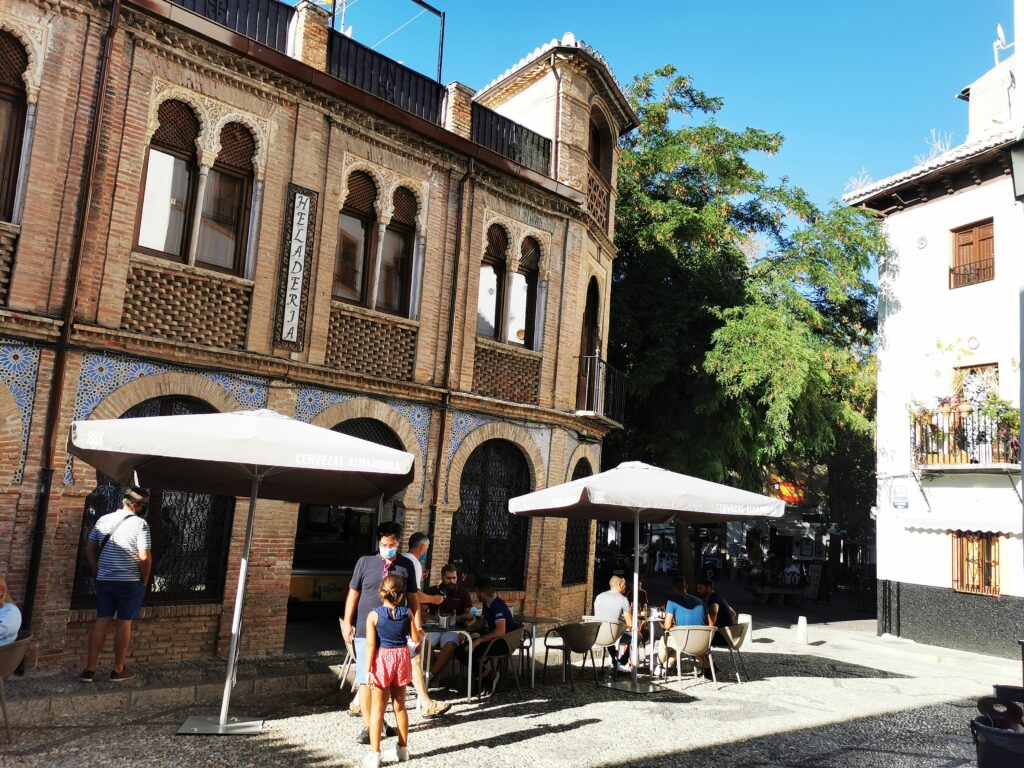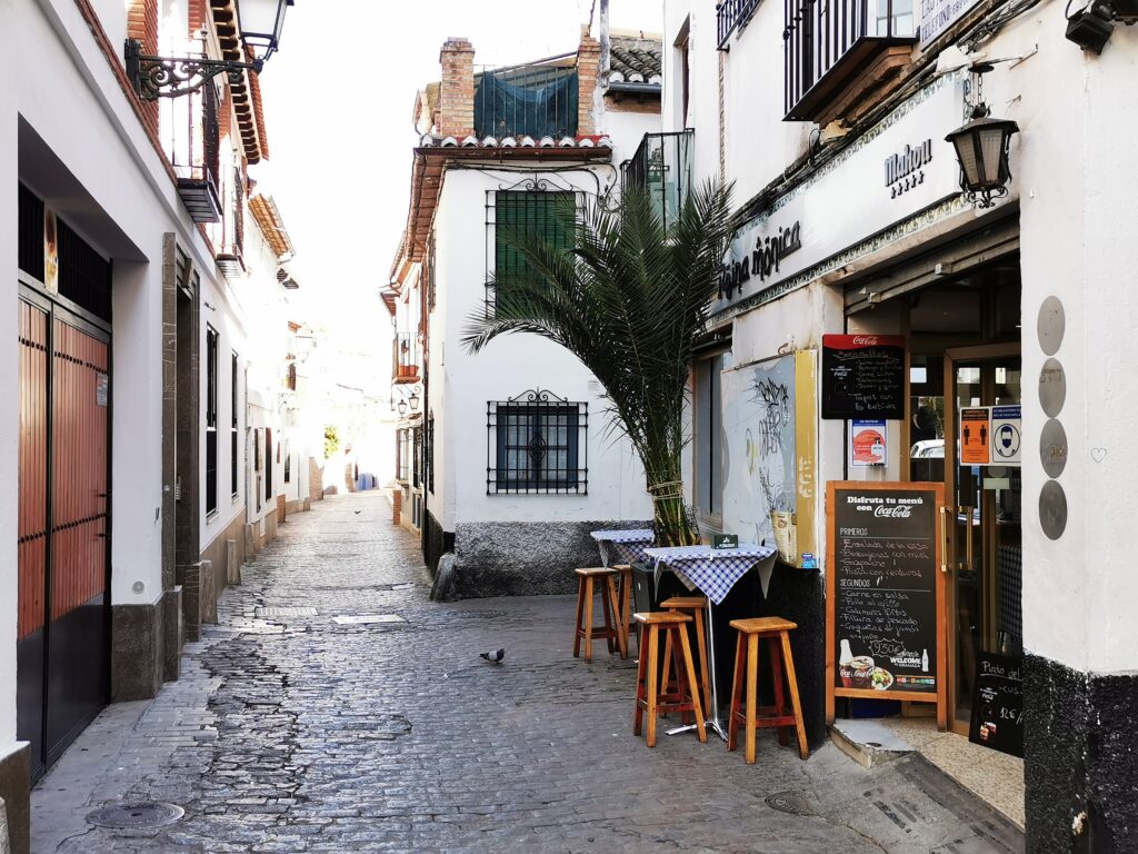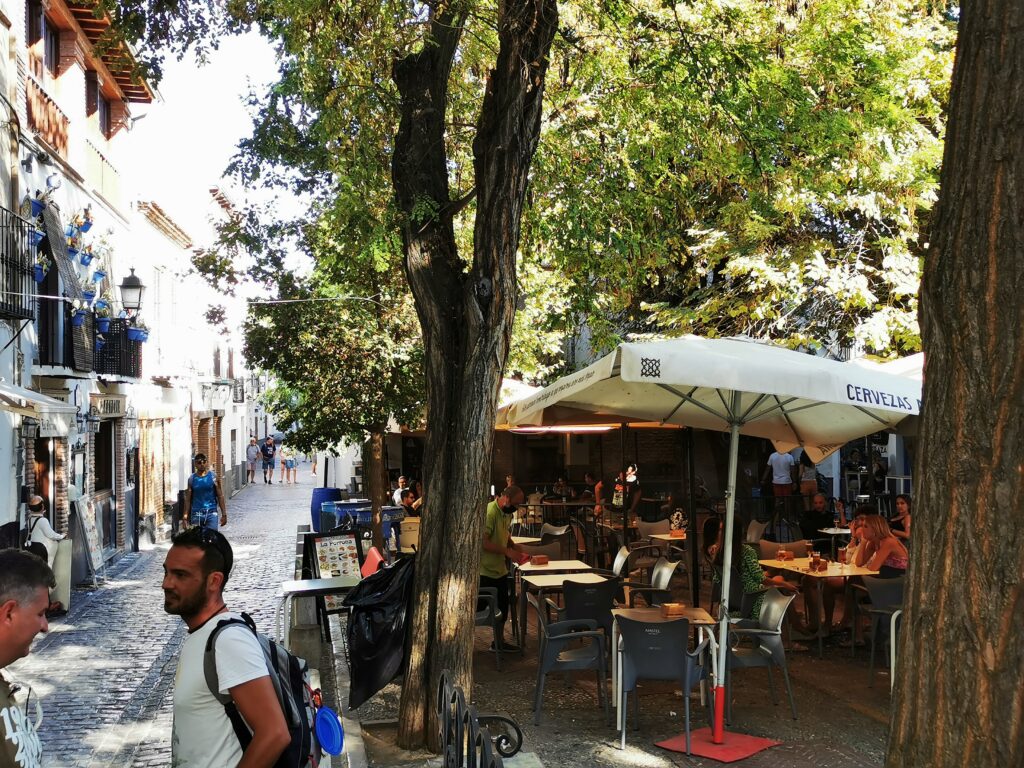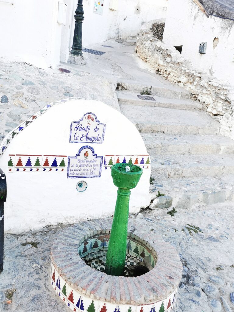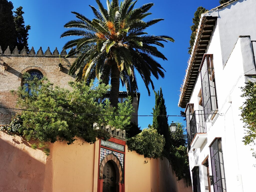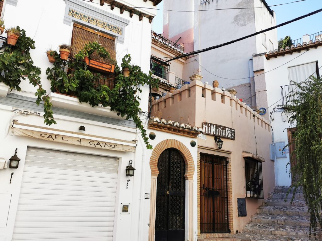 Gegenüber von der Alhambra liegt das ehemalige arabische Viertel Albaicín, das dann in den Sacremonte übergeht. Am Sacremonte leben heute noch Menschen in den Höhlen, die schon vor Jahrhunderten von Sinti und Roma besiedelt worden waren.